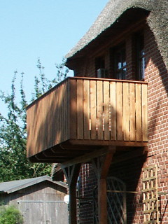 Seit 2013 hat die Dachgeschosswohnung links einen kleinen Balkon, auf dem man die Abendsonne genießen kann.